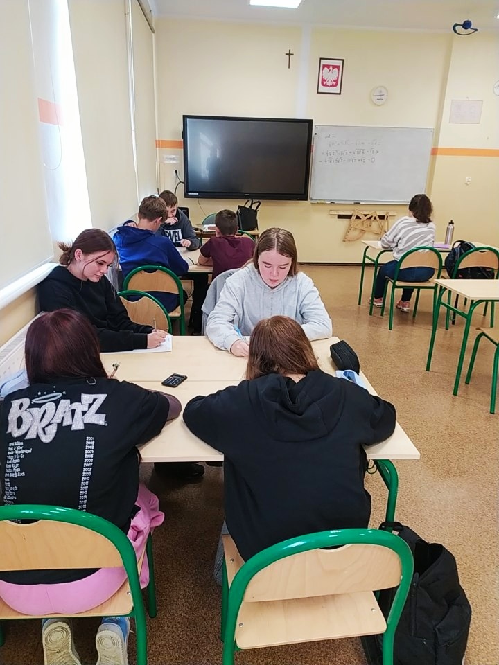 Uczniowie klasy 8 uczęszczający na zajęcia ,, Koła matematycznego przygotowującego do egzaminu ósmoklasisty" w miesiącu kwietniu przekształcali wyrażenia algebraiczne, rozwiązywali równania z jedną niewiadomą oraz proporcje.