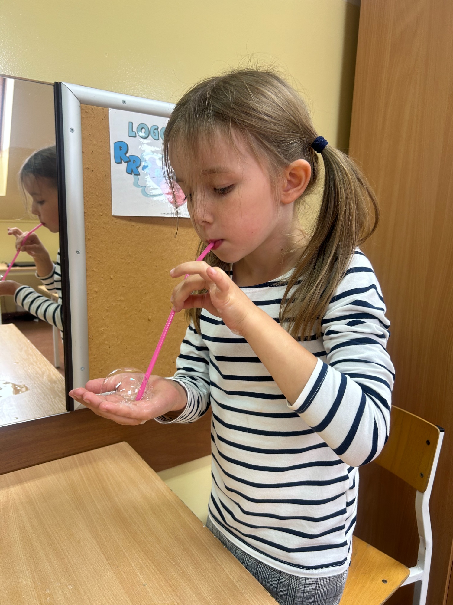Starsze dzieci pracowały nad usprawnianiem oddechu, artykulacji oraz różnicowaniem słuchowym. 🗣️👂