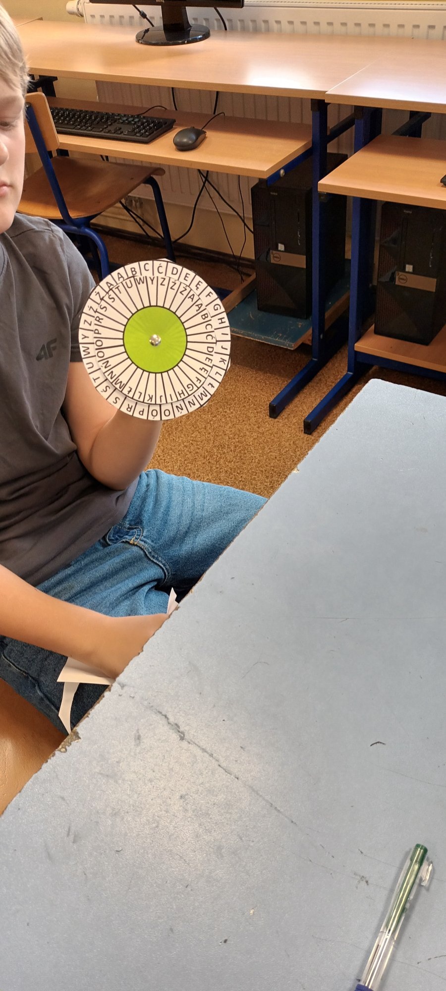 W październiku zajęcia z kółka matematyczno - informatycznego realizowane w ramach projektu "Gmina Brusy stawia na edukację" zostały poświęcone zagadnieniom z podstaw kryptografii. Uczniowie szyfrowali i deszyfrowali wiadomości z użyciem szyfru Cezara oraz przygotowywali własną maszynę szyfrującą.